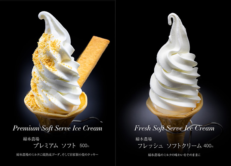 そしてショップで必食なのが、2種類の自家製ソフトクリーム!