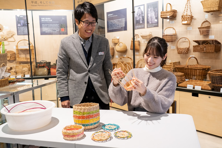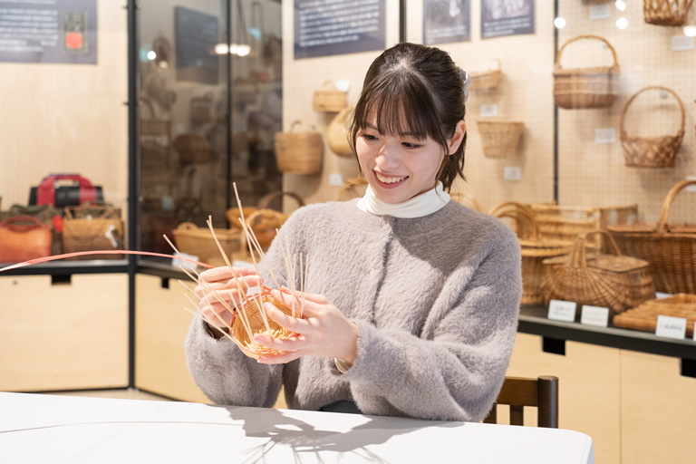 さらに、ミュージアムの奥では、国の伝統的工芸品「豊岡杞柳細工(とよおかりきゅうざいく)」の製作体験ができるんです。