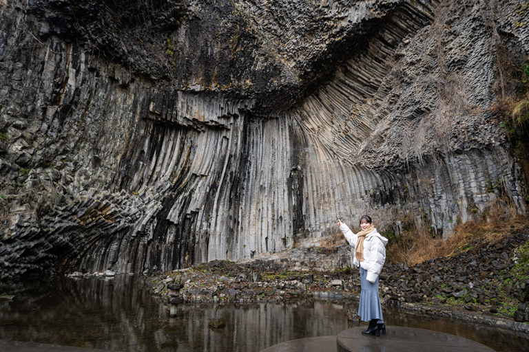 縦に横に斜に縦横無尽に伸びる石柱は圧倒的な存在感で、自然の驚異をひしひしと感じます。とても神秘的な場なので、パワースポットになっているのも納得。