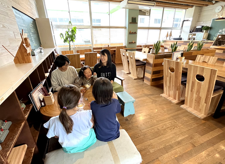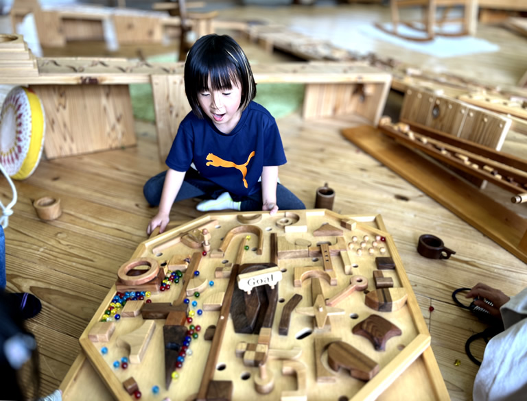 地元の無垢材を使い、体に害のないオイルで塗装されているので、小さな子どもにも安心して遊ばせることができるんです。