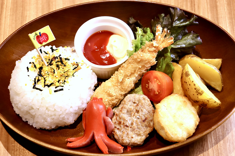 木の温もりがあふれる空間で、地元のお米を使った釜めしなど丹波地域の食材にこだわったランチが頂けます。お子様ランチ700円(税込)も用意されています。