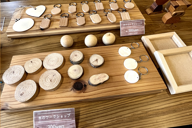 ショップのお隣の教室では、オリジナルのキーホルダーやウッドフレームを作る手軽なワークショップも実施。