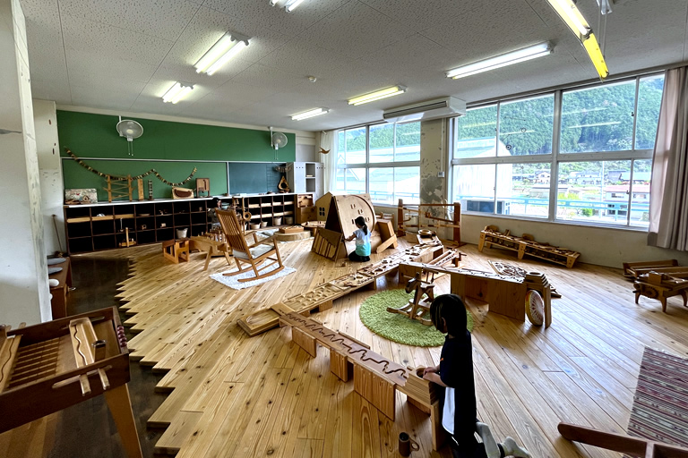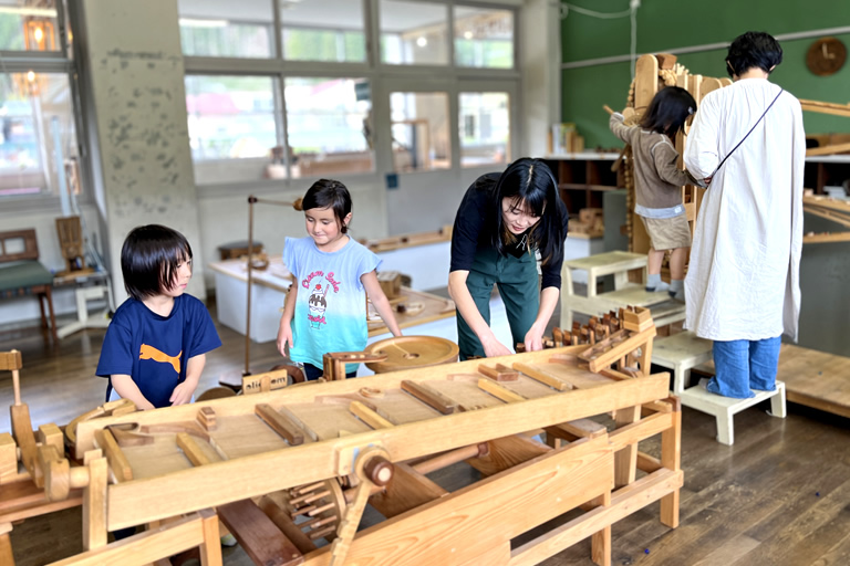 教室3つ分の空間に、子どもの五感を刺激する木のおもちゃが勢揃い