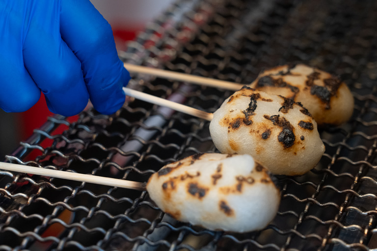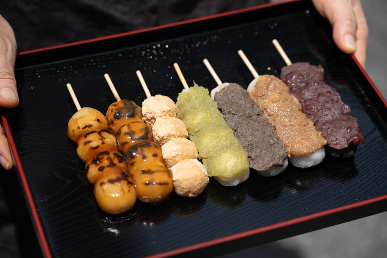 ベースとなるお団子は、姫路産の白米と宍粟市のもち米を毎日炊いて、つぶして練ったもの。コシがありながらもモチモチで甘さ控えめ。幅広い世代に人気です。