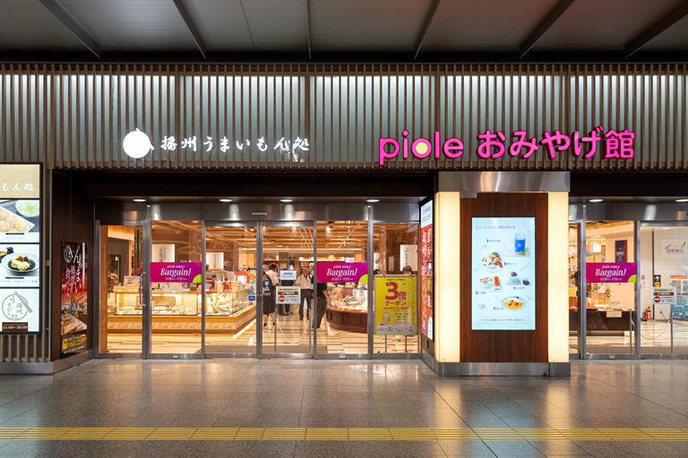 姫路駅構内にあるピオレ姫路おみやげ館は、老舗の定番土産が勢ぞろいしているスポット。お土産を選ぶ時間がない人には特におすすめです。