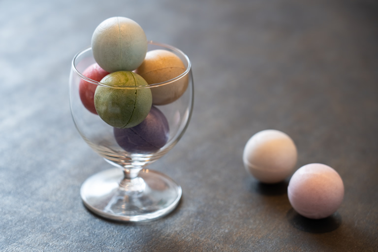 看板商品は、コロンとした色とりどりの球体もなか、「笑美玉(えみだま)」(1個162円(税込))。全国メディアにたびたび登場しています。フレーバーはフランボワーズ、抹茶、レモン、ラムネなどで1個から購入可。私はラムネがお気に入りです。爽やかなラムネ味と、こしあんのハーモニーは他にない味わいですよ。
