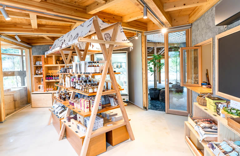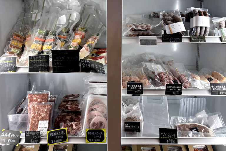 《大谷さん談》『この地域の魅力を知ってもらいたいので、食材はできるだけ地元産のものを使っています。直売所では採れたて野菜のほかに、猪肉などのジビエも販売しているので、買ってそのまま建物2階や屋外でバーベキューも楽しめます』。