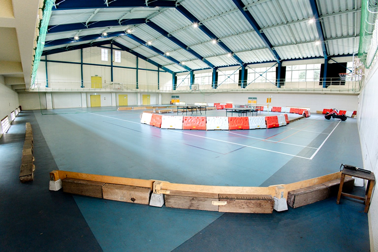 敷地内にはペダルゴーカートのサーキットやアスレチック遊具、体育館などがあるほか、すぐそばに浅瀬の川があって川遊びもできるので子どもは大喜び。