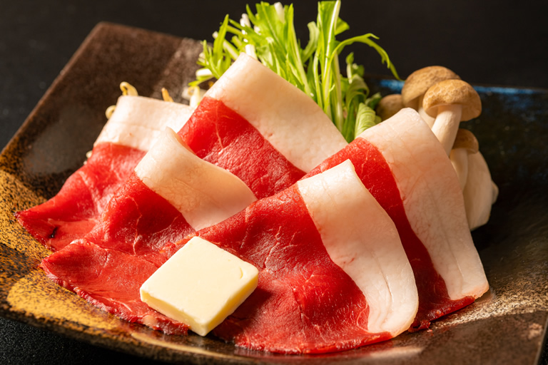 定番のぼたん鍋もとっても美味しいんですが、私のおすすめは、猪肉を焼いて食べる「石焼き猪肉御膳」2,000円(税込)。臭みがなく上質で柔らかな猪肉だからこそできる食べ方なので、ぜひ味わって欲しい逸品です。