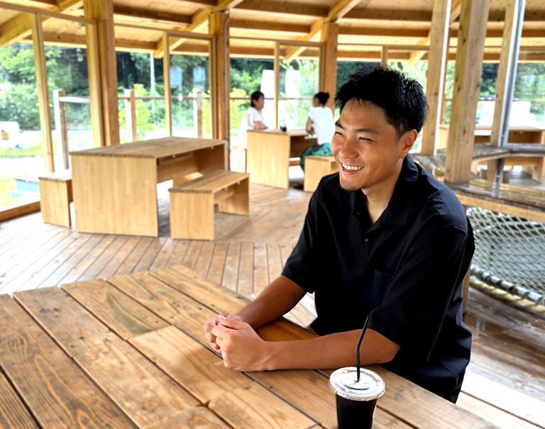 「草山温泉」の拠点施設は、2022年にリニューアルオープンした温浴複合施設「湯あみ里山公園 pucapuca commune(ぷかぷかコミューン)」。敷地内に、日帰り温泉施設「やまもりの湯」があります。施設の運営代表を務める大谷晃平さんにお話を聞きました。