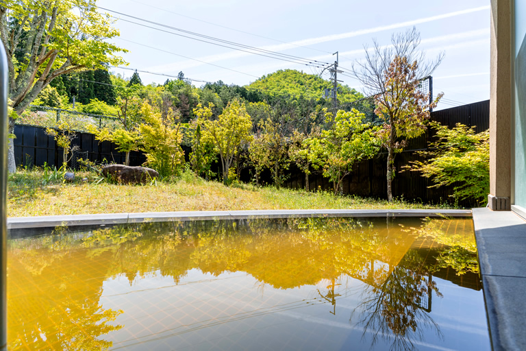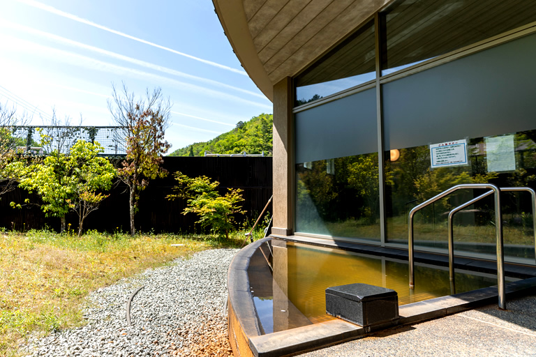 「やまもりの湯」には内湯と、里山の自然が望める露天風呂があります。有馬温泉と同じように鉄分が非常に多く含まれた茶褐色の湯なので金泉とも呼ばれていて、湯から上がると、塩分を含んだ温泉成分が肌にしっとり残るのが本物の温泉の証って感じです。