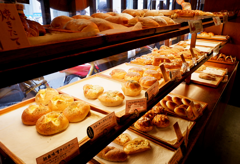 種類が豊富なパンには、生地に米粉や雑穀などを混ぜ込んだだけでなく、お餅や漬物を具材にしたり、味噌やわさび、ゆず胡椒を効かせたものなど、他では食べたことがないパンがいっぱい。