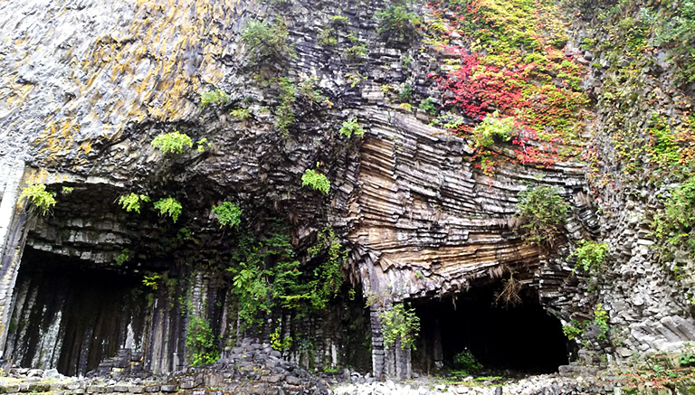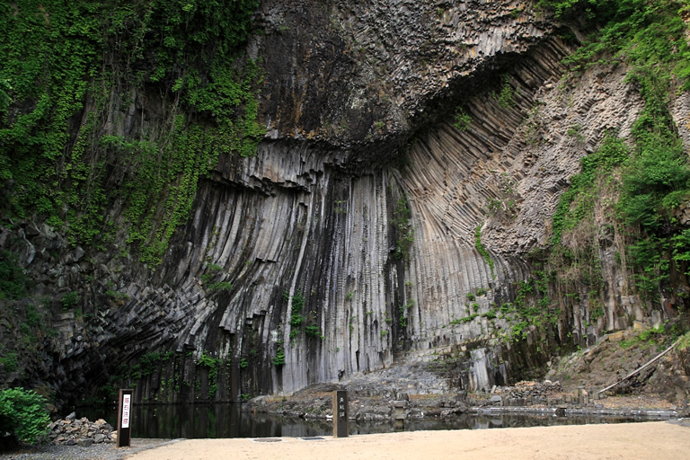 最も大きな洞窟が「玄武洞」で、玄武岩のみごとな柱状節理を見ることが出来ます。ちなみに「玄武岩」とは、この玄武洞の名前から付けられました。