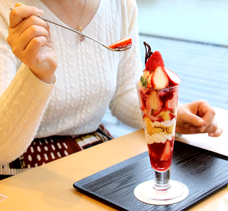 今の時期はいちごがいっぱいの季節のパフェも絶品です。地元の素材や美味しさにこだわった手作りのメニューはどれも本当に美味しいですよ。