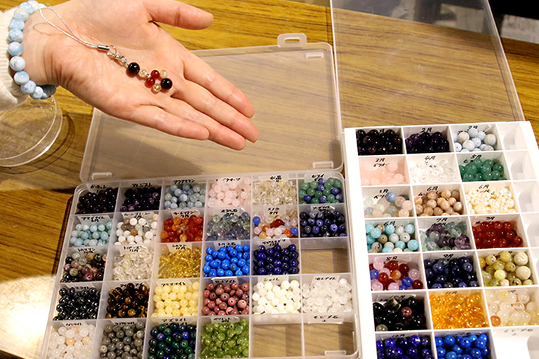 好きな石を選んで天然石のストラップが作れたり、豊岡の地場産業「豊岡杞柳細工」の体験もできます。