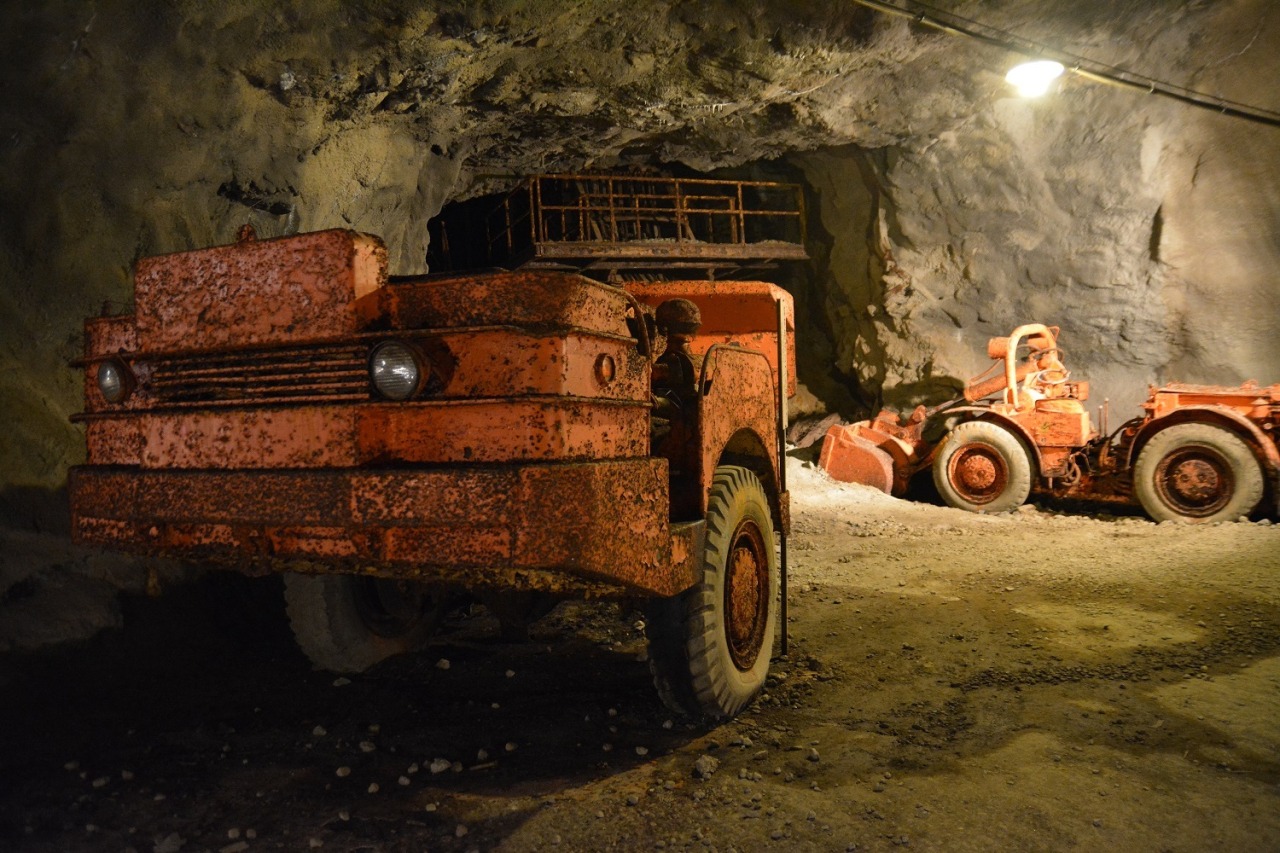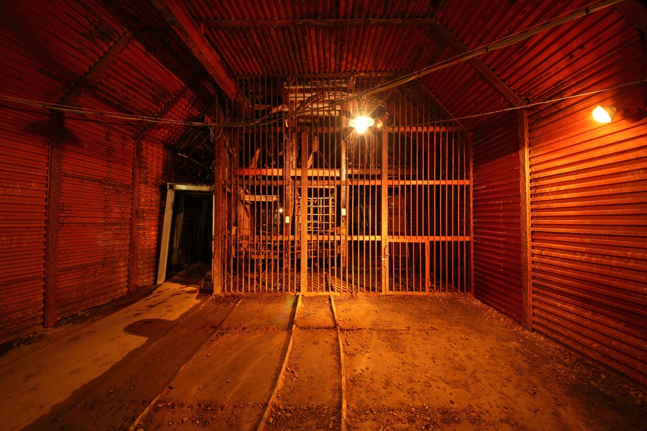 坑道内には、国内最大級の大きさを誇る電動削岩機や、鉱石を運んだトロッコのレールが今でもそのまま残されています。壁に残る当時のツルハシの跡がとても感動的です。