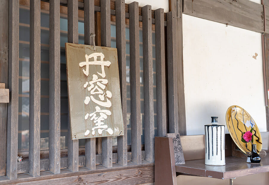 のどかな田園が続き、山々に囲まれた丹波立杭の地。山の斜面を切り開くように50軒以上もの窯元が点在し、窯の名前が力強く書かれた看板がそれぞれの軒先に掲げられています。