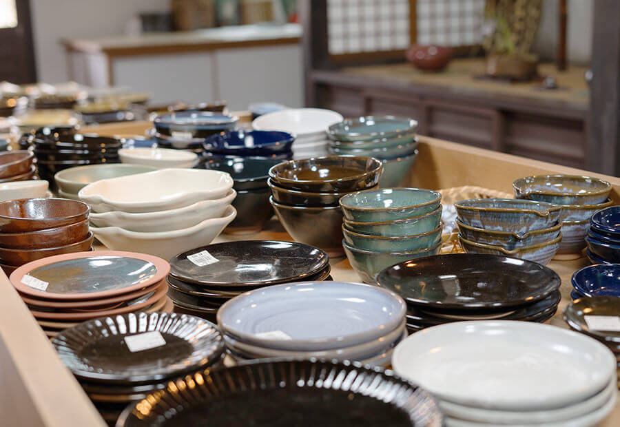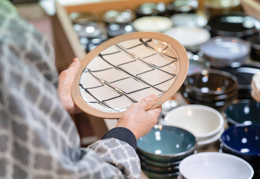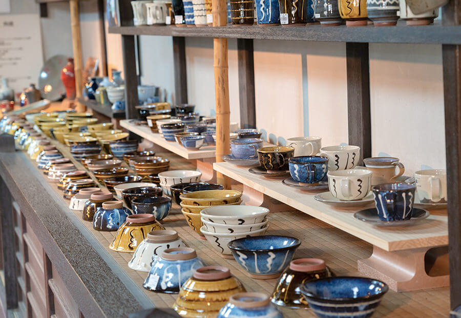 「鉄分が多いんですよ、丹波の土は。焼くと黒っぽいんで、釉薬できれいに発色させるのが難しい……。せやから、最近の各窯元さんはいろいろ工夫されてるんです。いろんな釉薬の調合とか色の出し方、器の形があって、それが窯元さんの丹波焼の味になっています。丹波焼には表現の上で特別な制約もなくて、自由にできるのが魅力の1つやと思いますね」。