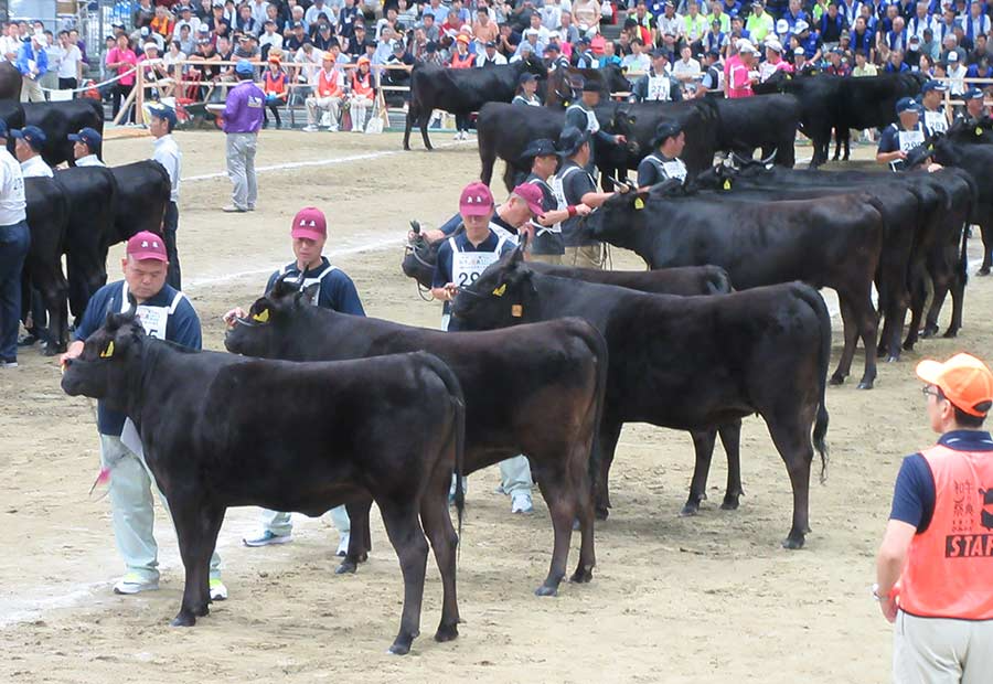 「大会には、何千人ものギャラリーと全国から選ばれた出品牛が集まっていて、とにかく迫力満点でした。モデルウォークするみたいに、牛と生産者が広い舞台をゆっくり一周して、それが大きなスクリーンに映し出されるんです。出品牛はどの子も貫禄があって、黒く輝く毛並みが綺麗で、あんなに怖かった牛が不思議とかっこよく見えて感動しました」。