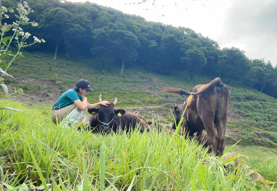 星七さんは2022年3月に農業高校を卒業したばかり。春からは兵庫県立農業大学校の畜産専攻に進学予定です。「夏休みには毎日放牧してる牛に会いに行くんですけど、私の顔を見て駆け寄ってきてくれる牛の姿がたまらなくかわいくて。その瞬間に“あ〜幸せだな〜!”って感じます」。そういって屈託のない笑顔を見せる星七さんは、元々動物が大の苦手だったとか。