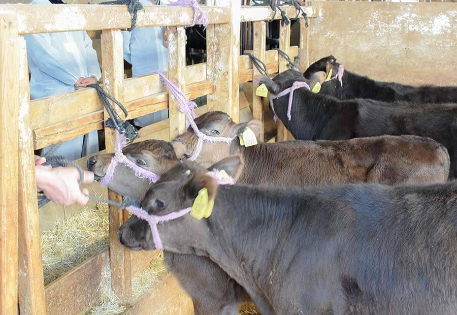 優秀な遺伝子を受け継いで生まれた但馬牛の子牛は、松阪牛や近江牛など、全国のブランド牛の素牛(もとうし)として出荷され、現代では日本の黒毛和種の99.9%が但馬牛の系統にあたります。