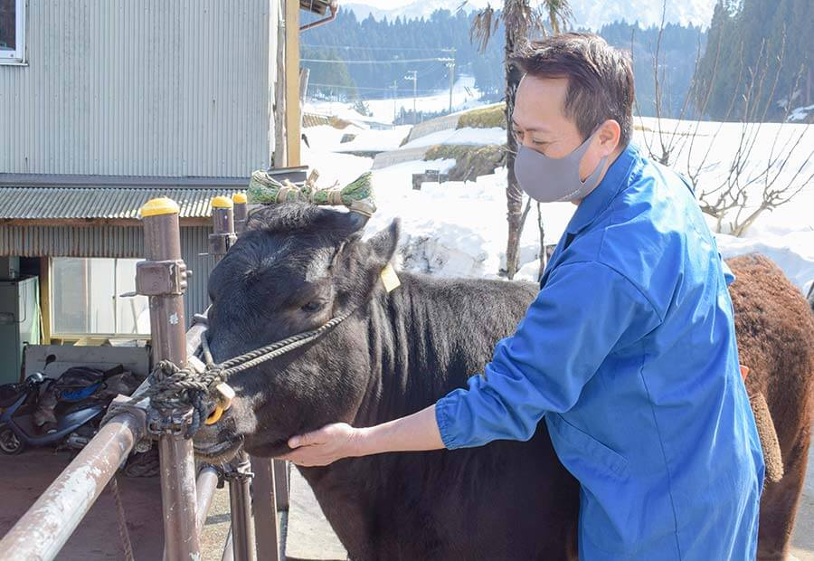 「家族同様に牛を育てるというのが美方では大切にされていてね。昔は玄関横に「マヤ」(牛用の部屋)を設え、ひとつ屋根の下で暮らす家庭も多くあったほどです。県内でも牛の扱い方は美方が一番やなと感じますね。毛並みを見ただけで違いが分かるくらいブラッシングも格段に丁寧です」。