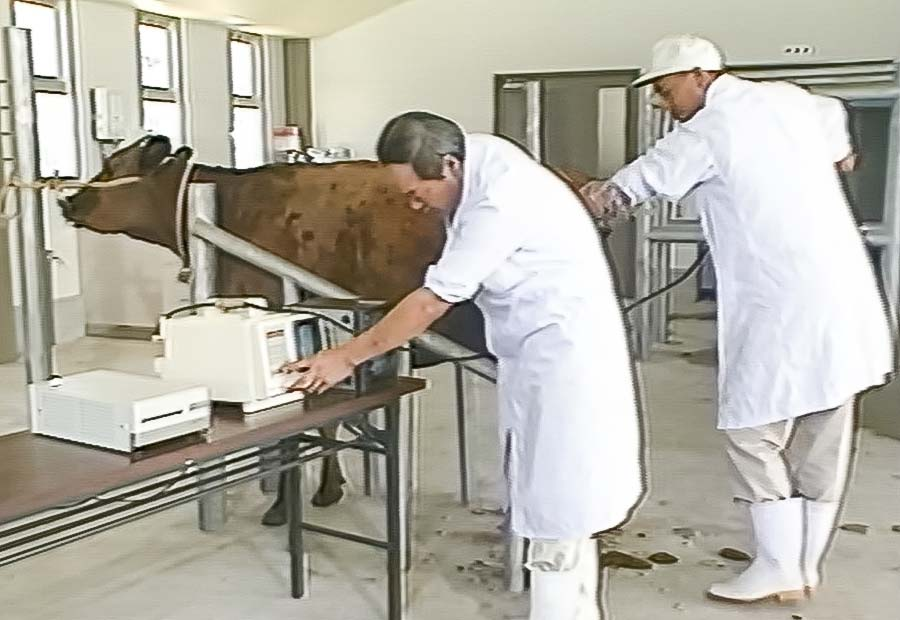 但馬牛が大好きな野田さんでも、研究がつらい時期があったと言います。それが、1990年代後半から農家を悩ませた種雄牛(しゅゆうぎゅう)の不作。種雄牛とは「お父さん牛」のことで、肉量や肉質などの厳しい基準をクリアした12頭だけが毎年選出され、県によって管理されています。但馬牛の繁殖は人工授精によって行われ、雌牛に精子を提供できるのはわずか12頭の種雄牛のみ。父親となる種雄牛が不作だと優秀な子牛も不足するので、競りに出される子牛の価格が下がり、農家には大打撃。流通する但馬牛の質も落ちてしまい、但馬牛は今までにない窮地に立たされました。