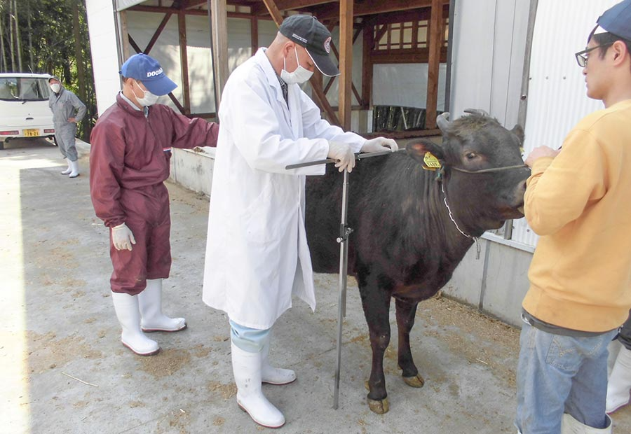 「大学3年生の時に、牧場実習で但馬牛の研究を行う『畜産試験場但馬分場』を訪れたんです。ずらーっと並んだ種雄牛(しゅゆうぎゅう)の血統や体格の特徴を、分場長が一頭一頭とても丁寧に説明してくれたんです。牛への愛情がこもった語り口に、“この人ほんとに牛が好きなんやなぁ”と心を打たれて……自分も県の職員になって、但馬牛に関わる研究がしたいと思うようになりました」。
