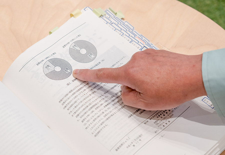 研究者として37年にわたって県内各地の試験場に勤務した野田さんは、2016年に定年退職。美方郡に古くから伝わってきた牛に関することわざ、研究成果、牛の飼い方など、全ての経験を後進に託すべく、100ページ以上にのぼる冊子を作成し、後輩に託したそう。その但馬牛への尽きることのない愛は、後進の研究者にも受け継がれています。「後輩にはいつも、“牛を好きになろう。牛の目線から研究をしよう”と指導してきました。その思いを汲んだ後輩が、母牛・子牛のストレスを軽減するための研究や、子牛がすくすく育つ飼い方に関する研究を進めてくれています。うれしいですね」と破顔。