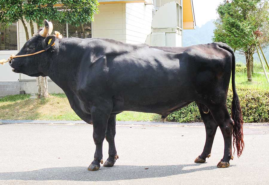 そんな中、優秀な雄の子牛を探して県内の農家を巡るうち、平成10年、ついに一頭の子牛と出会います。それが、のちに「スーパー種雄牛」と呼ばれ、但馬牛のピンチを救うことになる「福芳土井(ふくよしどい)」。骨太で一見従来の但馬牛らしさはありませんでしたが、母方の血統構成や祖先の肉質が良かったことから、一目見て「この牛はきっとすごい牛になる」と直感した野田さん。小柄であることが但馬牛のアイデンティティとされ、昔から「但馬牛は小さくあるべき」という価値観が研究者の中にあったため、極めて大柄な体格だった福芳土井を種雄牛候補として選んだ野田さんには、周囲から大きな反対が。それでも研究を続け、平成15年、見事に基幹種雄牛となった福芳土井は次々と優秀な子孫を残し、その子どもたちは現在でも但馬牛のブランド力を支え続けています。「つらい時期もありましたが、福芳土井を見いだし、その能力が肉量肉質ともに歴代最高であることが証明された瞬間が、私の研究者人生で一番うれしい出来事でした」。