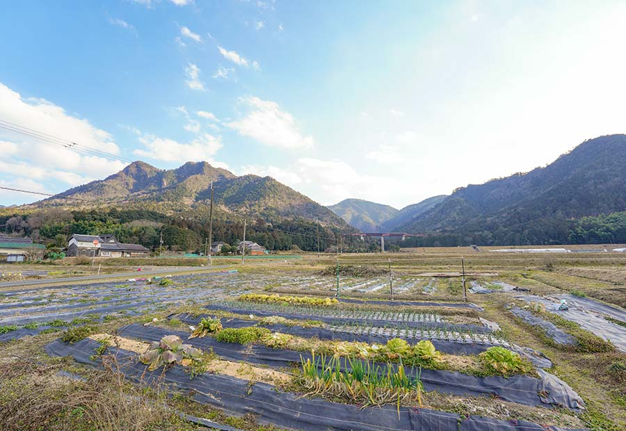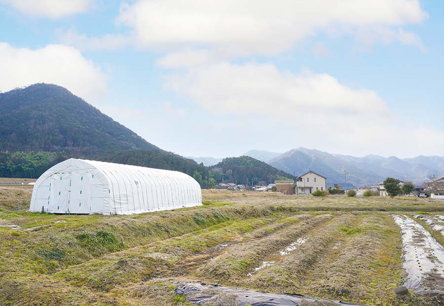 見渡す限りに田畑が広がり、視線の先には三尾山(みつおさん)をはじめとする山々がどっしりと構える丹波市春日町。全国的に黒豆の産地として有名な丹波市は、気候や地質等の条件が備わり、「丹波大納言小豆」が栽培される希少な地でもあります。記録にある限りでは約350年前から栽培されており、江戸幕府や京都御所にも献上されていたという一級品。大きな俵型が特徴で、煮ても腹の部分が割れにくいことから、切腹の習慣がなかった大納言にちなんで名付けられたと伝えられています。