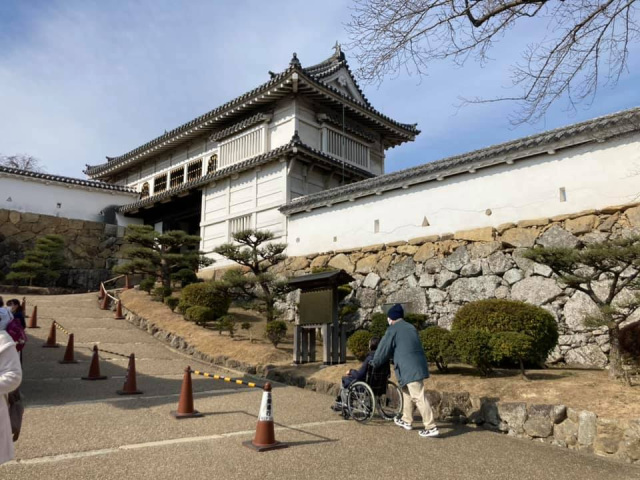 車いす専用の案内ルートもあります。城内は急な坂も多く、車いす単独での入城が出来ませんので、介助に慣れた方が車いす1台につき3名の介助者が必要です。ルート内に多目的トイレがありませんので、見学前にトイレを済ませてください。