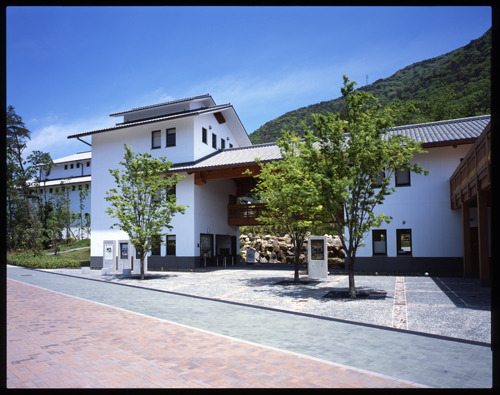広大な敷地に展示棟や研修棟、茶室などが立ち並びます。丹波焼や出石焼、三田焼、みん平焼など県内の陶磁器を中心に展示しています。