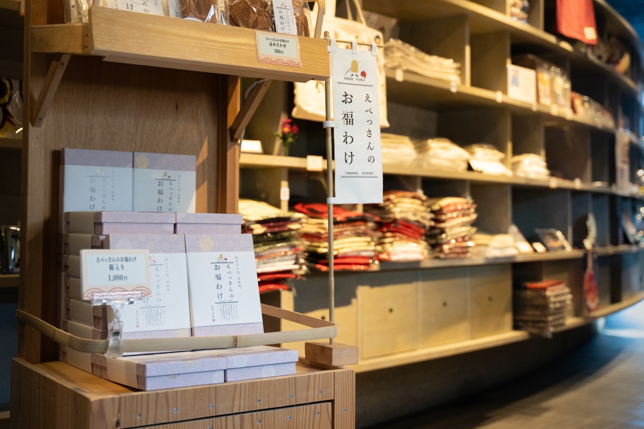 淡路人形座での公演を心ゆくまで堪能したら、ぜひ売店にも立ち寄ってみてください。ここだけのオリジナルグッズ「傳次郎こんふぇいと」や「えべっさんのおふくわけ」など、旅の思い出にぴったりの品々が見つかりますよ。