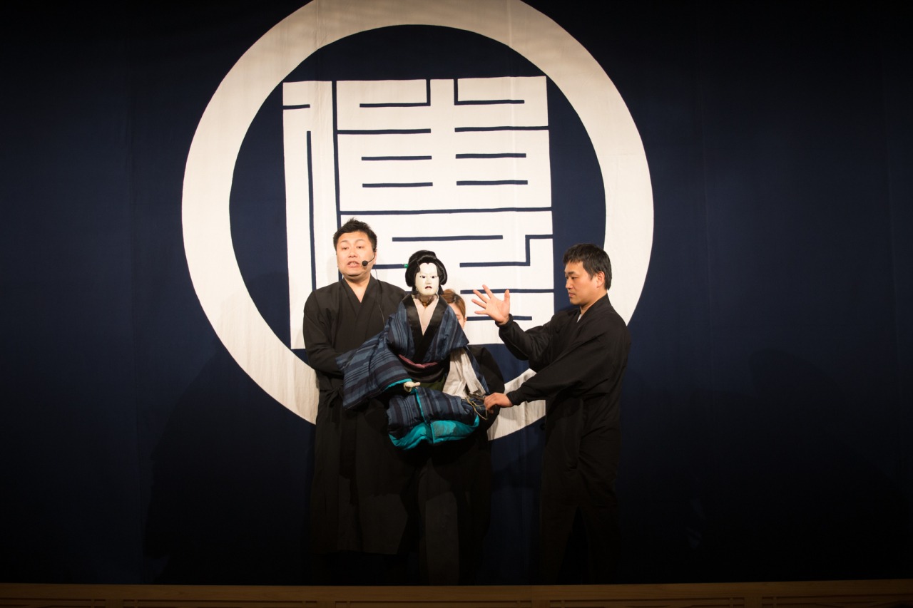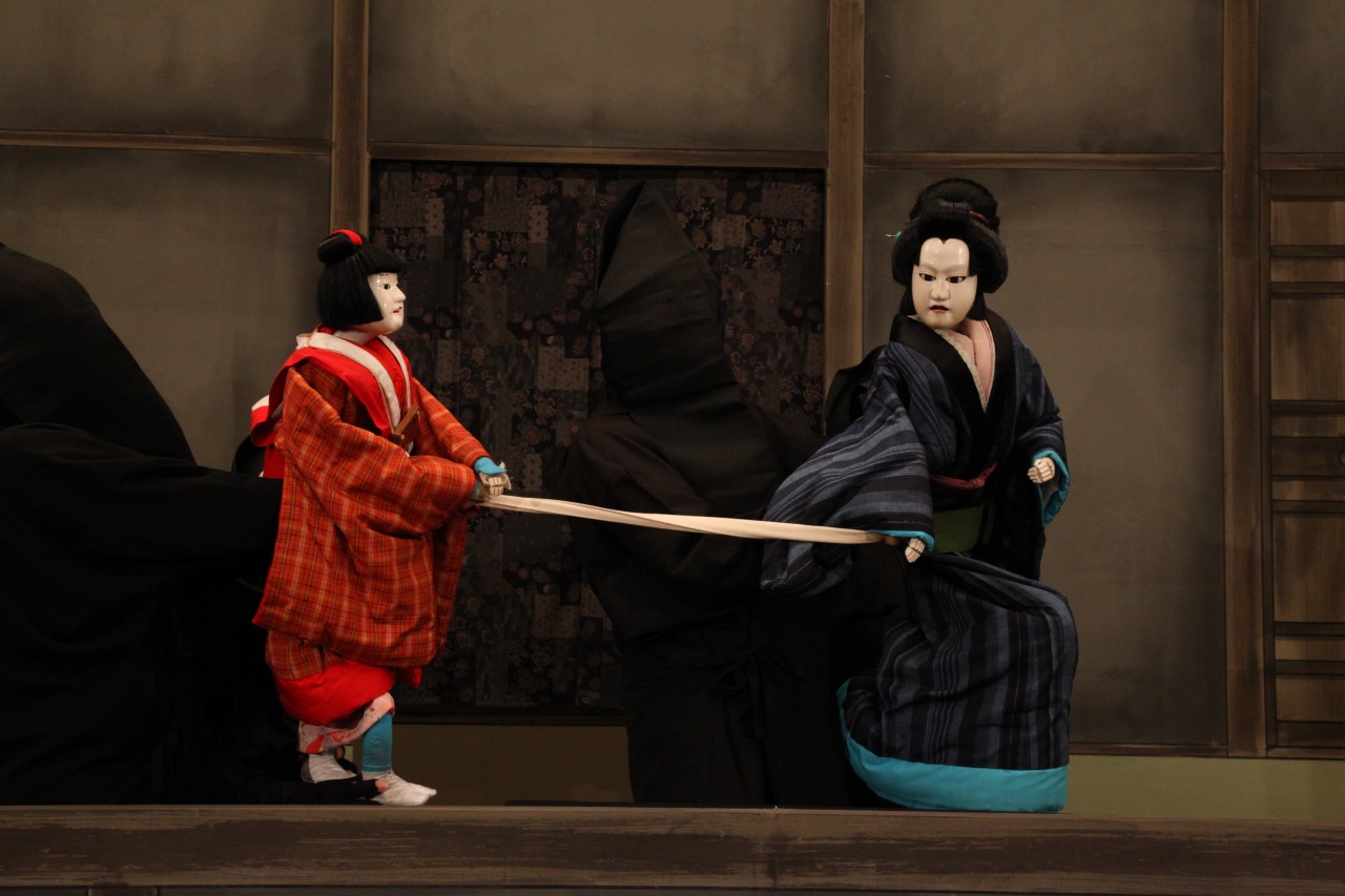 まず驚かされるのは、文楽の人形よりも一回り大きく、ずっしりとした人形の存在感。これは、電気がなかった時代に広い野外でも遠くの観客にしっかり見せるために、作り手が工夫を凝らした名残です。