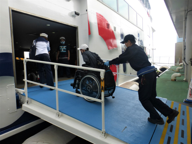 車いすをご利用された方は1階のみの移動となりますが、乗り込みの際にはスロープもあり、船内には安心して利用できるバリアフリーのトイレもあります。