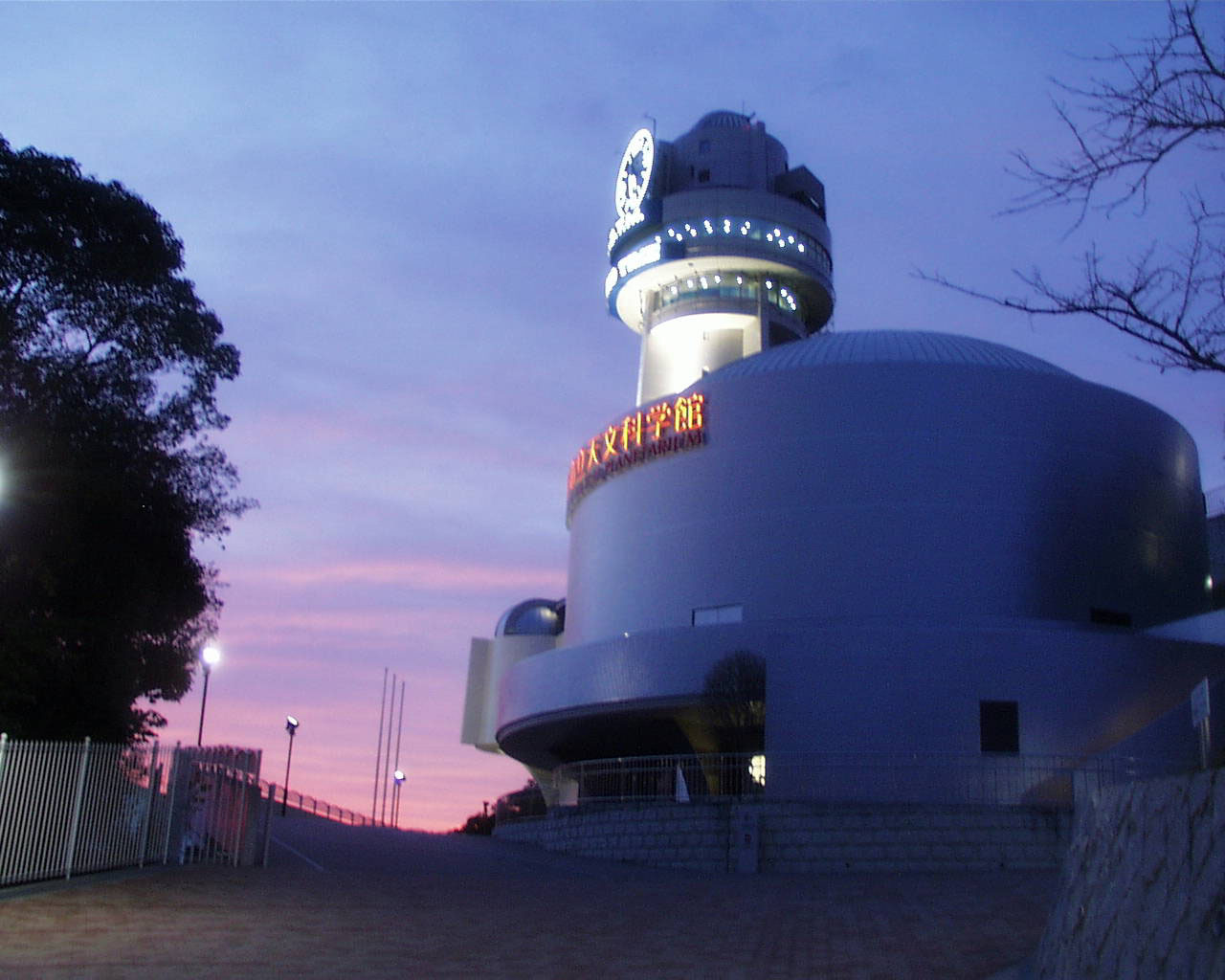 東経135度日本標準時子午線上に建つ”時と宇宙の博物館”。直径約6.2mの大時計がシンボルです。