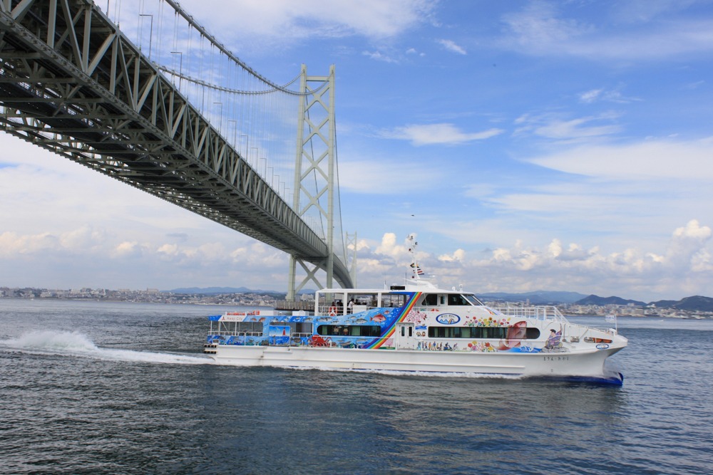 多くの船が行き交う風光明媚な明石海峡を航行し、明石海峡大橋の下をくぐり抜けるダイナミックな景観を満喫することができる「淡路ジェノバライン」。