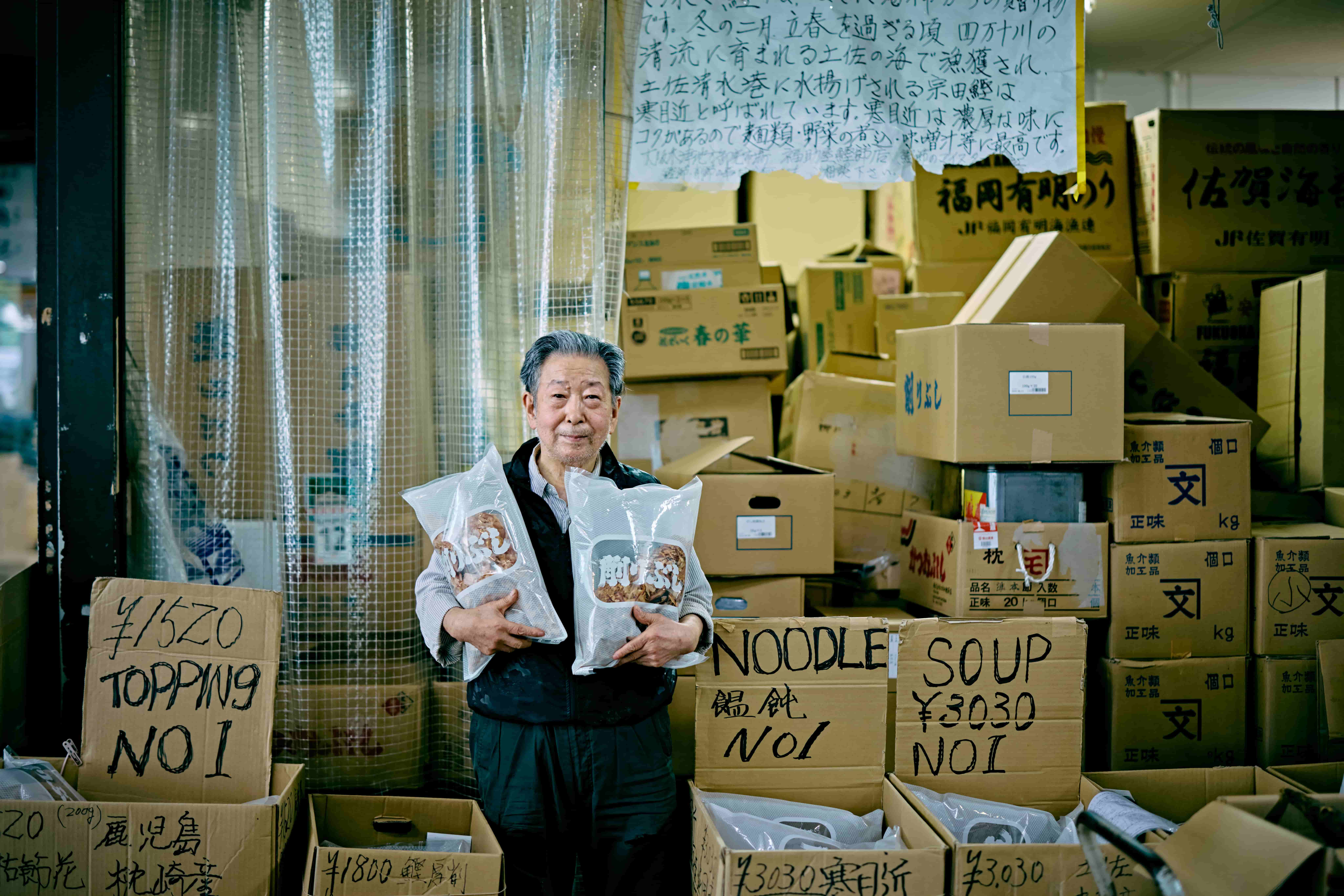 「福助屋鰹節店」は、高知県の土佐清水港に水揚げされる宗田鰹を使用した宗田節の最高級品「寒目近(かんめじか)」をはじめ、一般には出回らない貴重な鰹節を豊富に取り扱う。