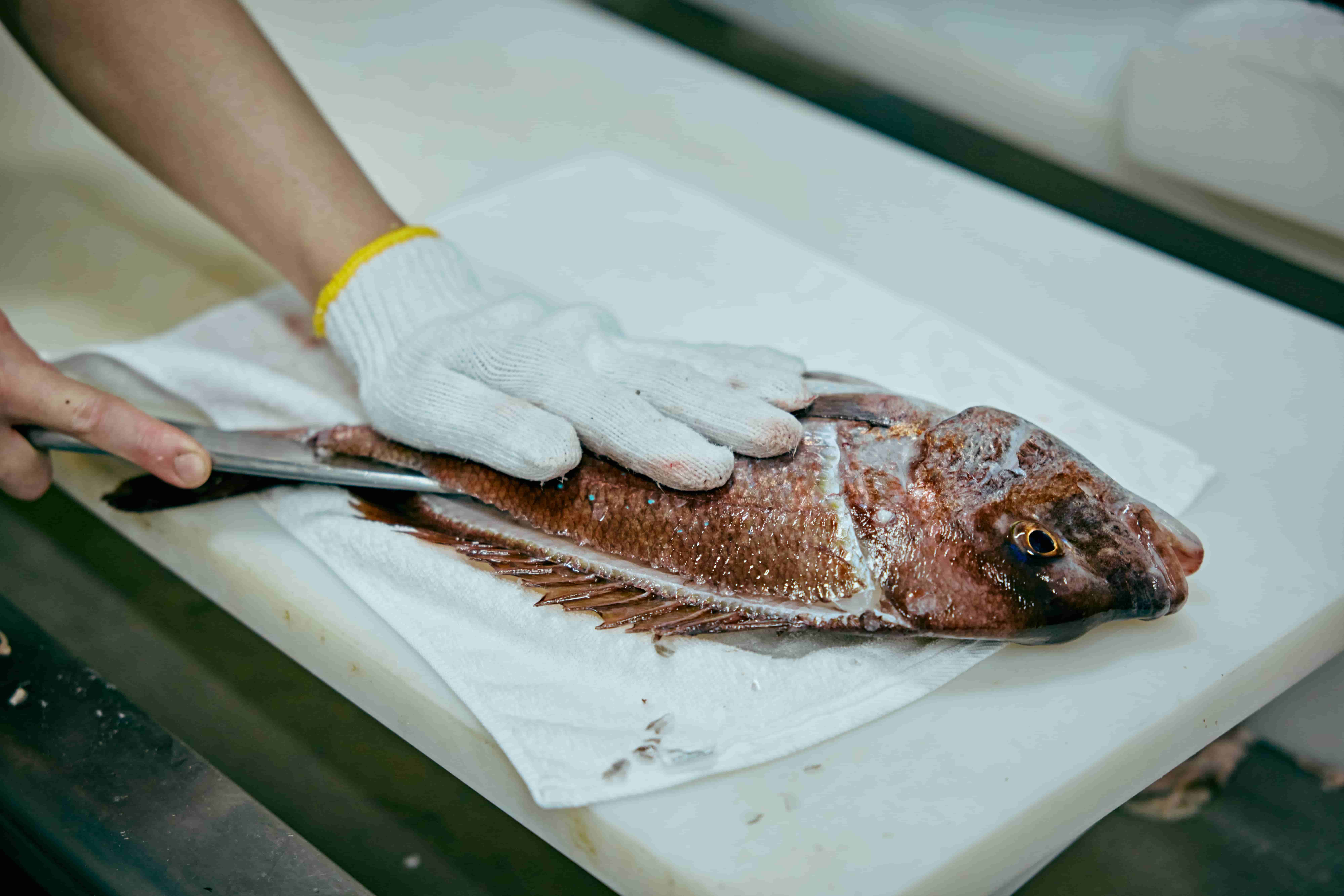 「魚は自分を防御するために体にぬめり気を出すのですが、そのぬめり気がしっかりあると質が高い。そういう細かいところを数秒間でチェックしています」と山口さん。