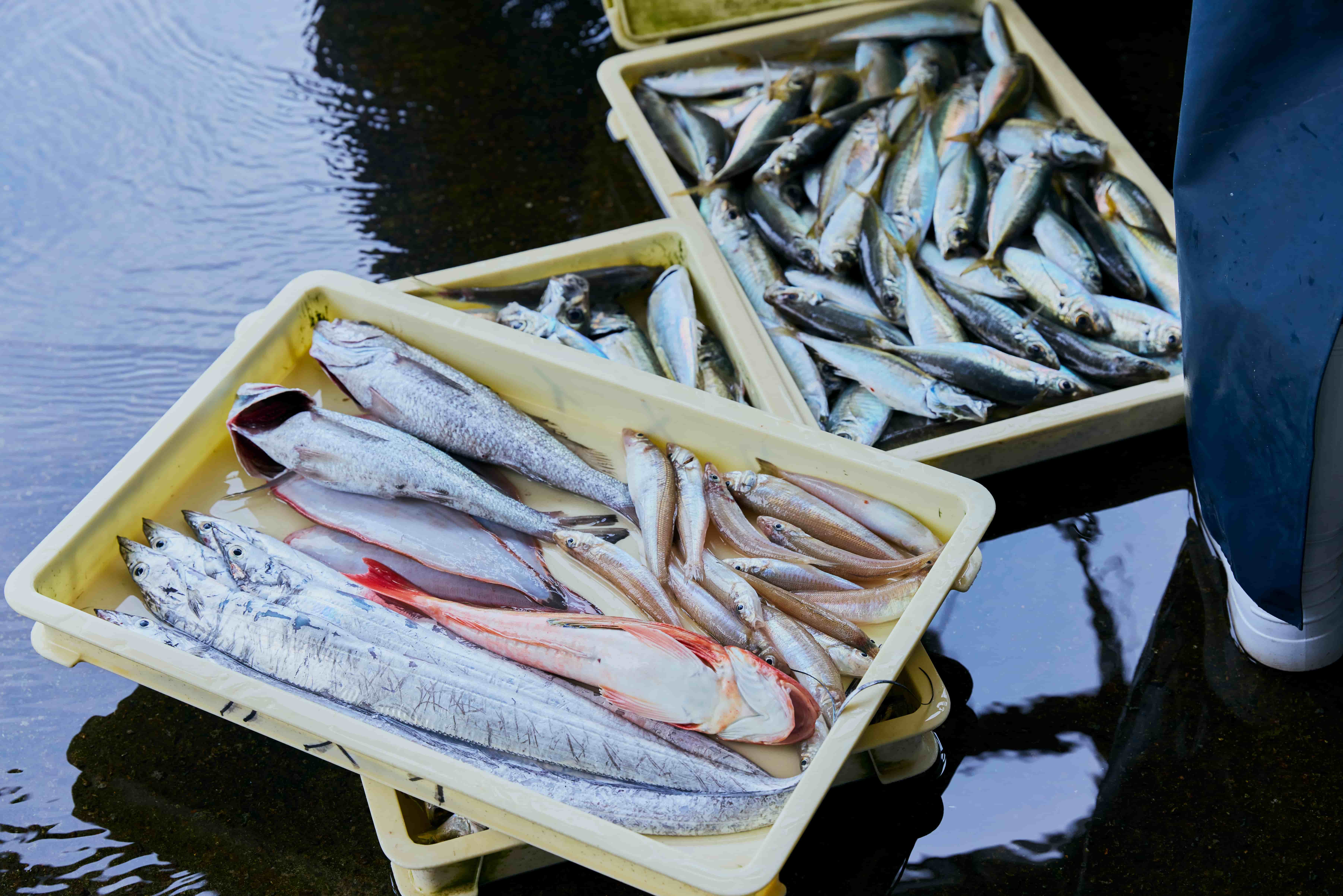 活気ある漁協でとれたての魚に触れたあとは、自分で魚を“釣る”体験を楽しみたい。