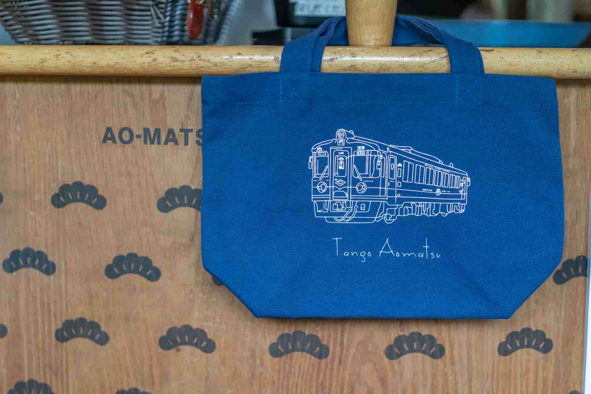 車内では丹鉄オリジナルグッズも販売。水戸岡鋭二氏デザインのクリアファイルや手ぬぐい、旅先で重宝するトートバッグなど、旅の思い出を彩る品が揃う。
