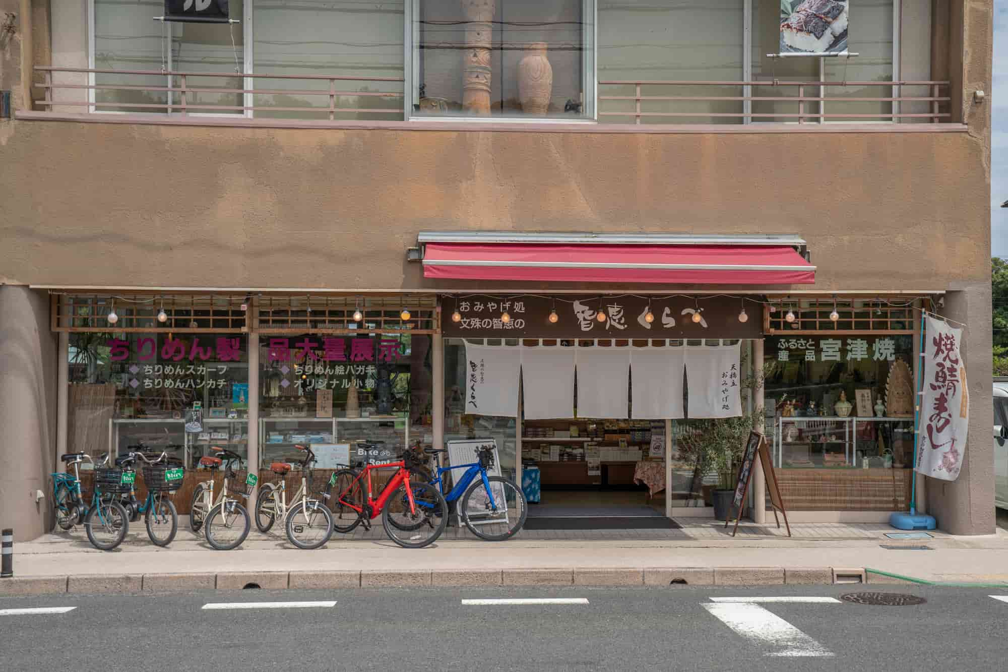 海の京都エリアでe-Bikeのレンタルやガイドツアーを行っているのが「Kyoto E-Bikes」だ。レンタサイクルの貸し出し拠点も複数あり、そのひとつが天橋立駅前にある土産店「智恵くらべ」。車種は本格的なスポーツタイプからシティサイクリング用まで豊富にラインナップ。目的や走行距離に合わせて選ぶことができ、旅の自由度がぐんと広がる。
