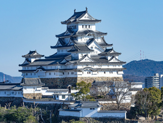 - 奈良の法隆寺とともに日本初のユネスコの世界文化遺産に登録された姫路城は、日本に現存する城の中でも、世界に認められた名城です。白漆喰総塗籠の白壁が冬の青空に映えます。
