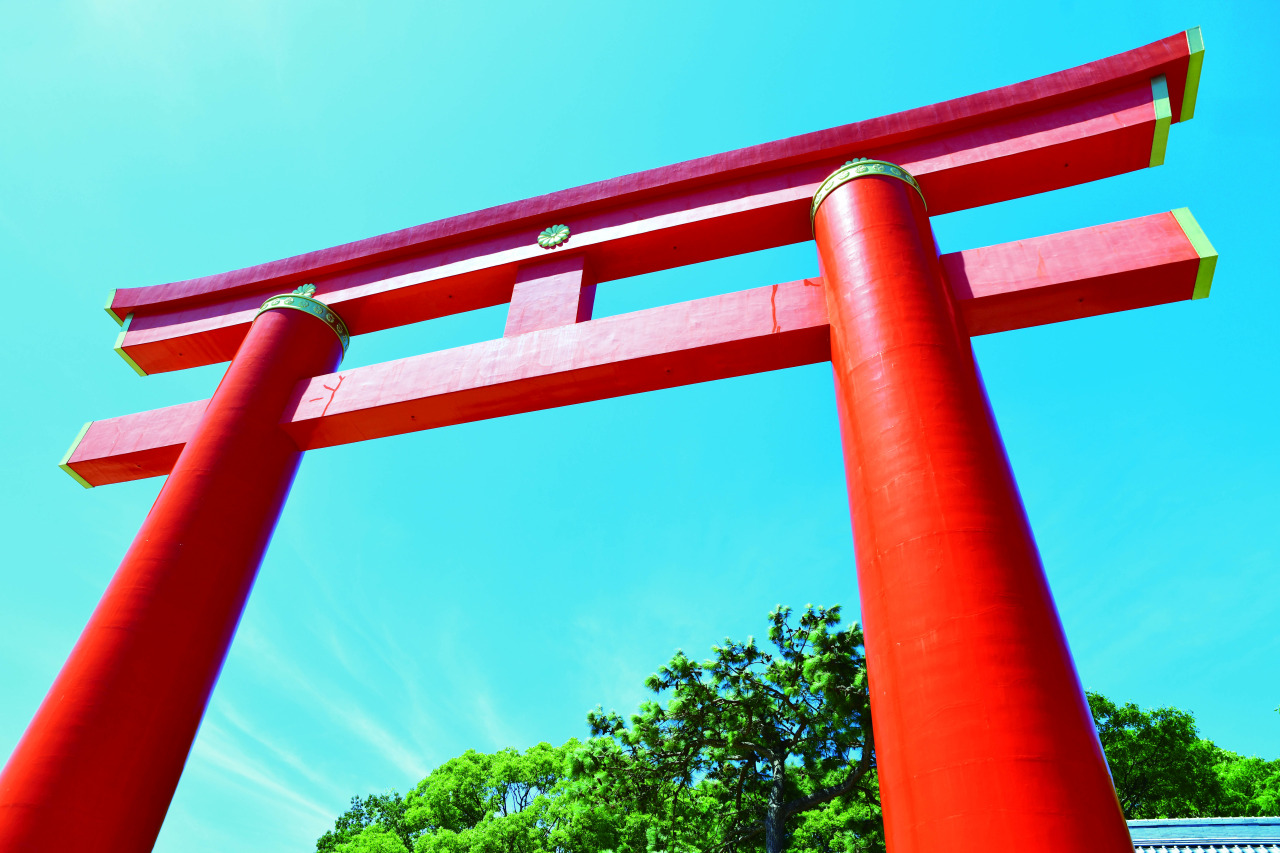 イザナギ・イザナミがつくったといわれる「おのころ島」にちなんだ神社で、迫力満点の朱塗りの大鳥居や格式高い本殿の屋根の鰹木が見もの。神社内のガイドコースですが、ご希望に応じて周の天浮橋や葦原国をご案内します。