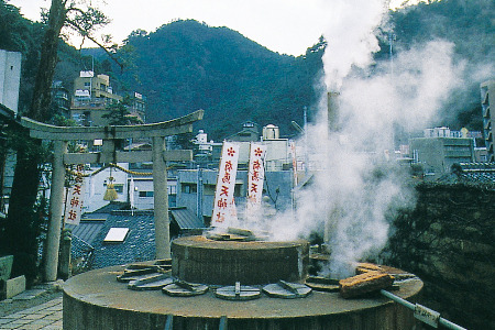 六甲山の北麓に位置する、日本三古湯、日本三名泉の一つに挙げられる有馬温泉。豊臣秀吉が愛したことでも知られており、現在でも昔ながらの情緒あふれる温泉街が広がります。2ヵ所の共同浴場と5ヵ所の泉源めぐり、日帰り入浴のできる宿も多く、温泉めぐりが満喫できます。