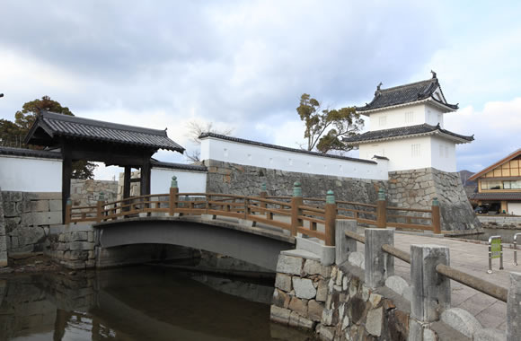 浅野長直の指示によって13年の歳月をかけて築かれた海岸平城。構造は戦を強く意識しており、複雑に折れ曲がる堀や石垣、角度をたがえる諸門が特徴的です。平成14年には本丸庭園と二之丸庭園が国の名勝に指定され、城内は城跡公園となっています。