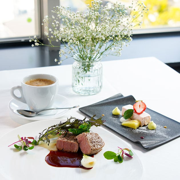 世界遺産 姫路城を目の前に臨む絶景レストラン「SORA NIWA(ソラニワ)」。地元の厳選食材をふんだんに使った和洋折衷料理が味わえます。