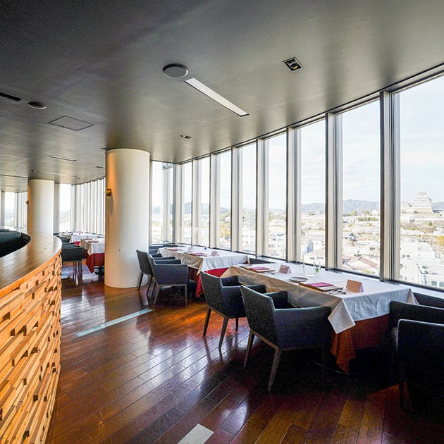 眼下に広がる姫路の街並みと姫路城を眺めながら、優雅なランチタイムを過ごせそうですね。