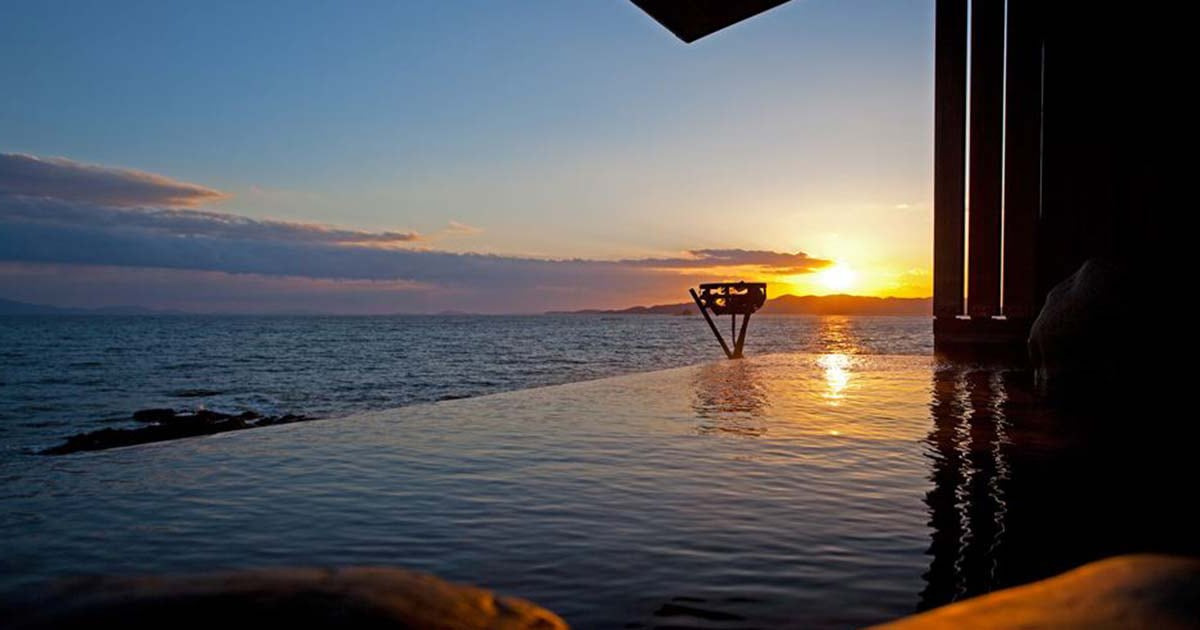 「日本第一」の塩を産した赤穂市の温泉地「赤穂温泉」。塩分やミネラル成分を多く含む食塩泉で、なめらかな湯ざわりが特徴です。健康回復・美肌効果に優れた泉質から“よみがえりの湯”とも呼ばれるほど。瀬戸内海を眺めながら入浴できる温泉宿も多く、海に沈むサンセットは「日本夕景百選」にも選ばれています。